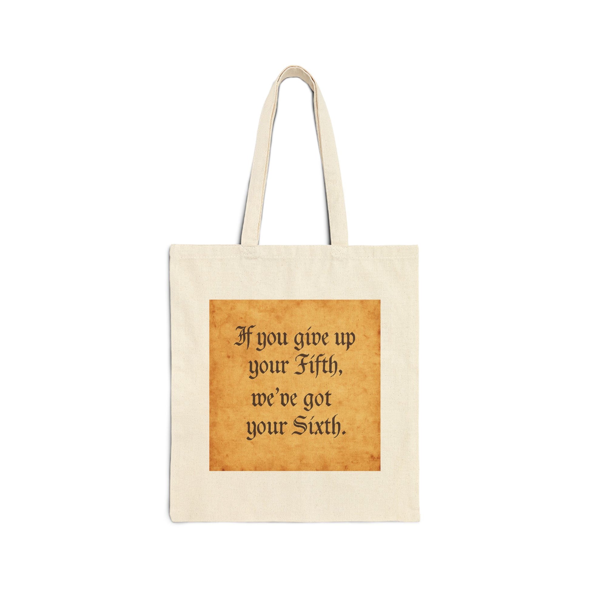 Carry your essentials—and your sense of humor—with this bold Cotton Canvas Tote Bag featuring the witty phrase “If You Give Up Your Fifth, We’ve Got Your Sixth.” Perfect for public defenders, law students, or anyone who loves a clever nod to constitutional rights, this tote blends functionality with personality. Whether you’re hauling case files, groceries, or beach gear, its durable design ensures it can handle the load while sparking conversations along the way. Thoughtful, practical, and just a little cheeky, it makes an excellent gift for graduations, holidays, or everyday justice warriors.